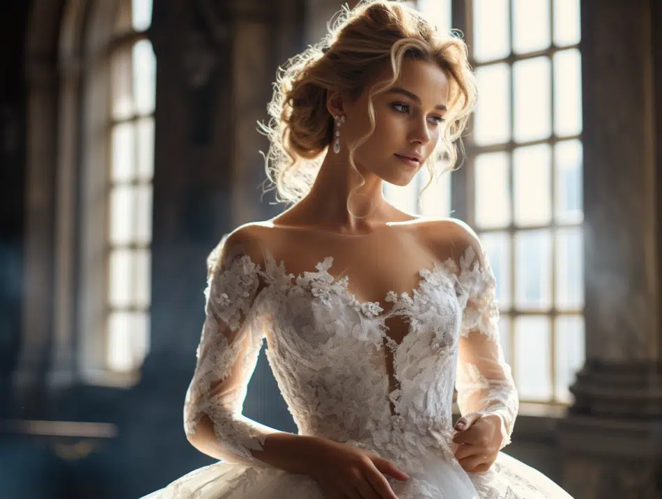 Lorsqu’il s’agit de mettre en valeur le décolleté cœur ou les mariée manches d’une telle robe, la coiffure joue un rôle capital. Les cheveux relevés en un chignon sophistiqué ou agrémentés de quelques fleurs délicates permettent de souligner le port de tête et de mettre en exergue la ligne du cou et des épaules. La coiffure doit être en accord avec le caractère princier de la robe, tout en reflétant la personnalité de la mariée.